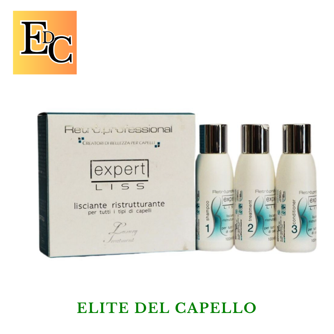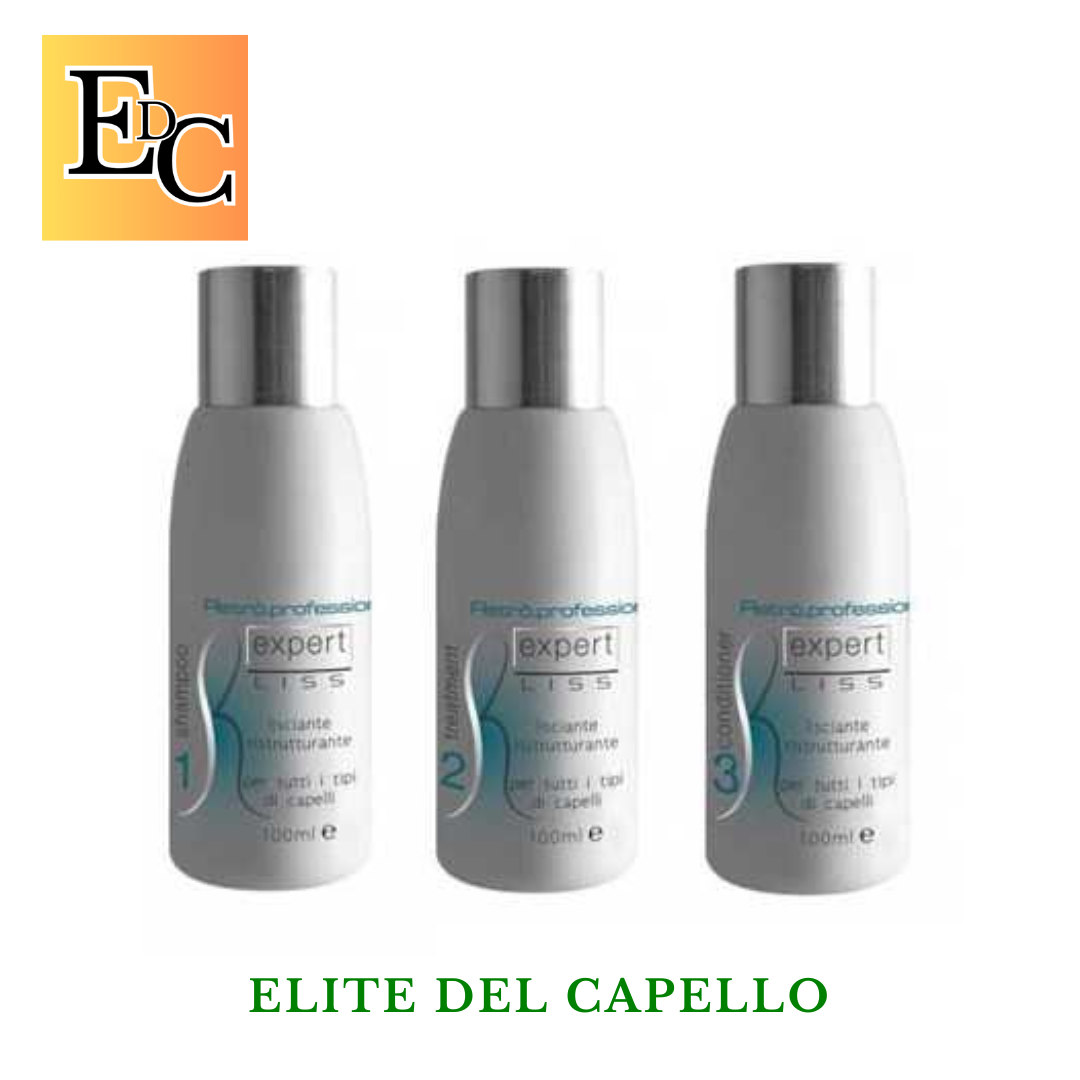 Expert Liss à il primo trattamento lisciante ricostruttore. Gli agenti attivi agiscono in sinergia alla piastratura ricostruendo la fibra capillare nella forma liscia nel totale rispetto della salute. La sua formulazione, arricchita con keratina idrolizzata e estratti vegetali dalla ricca composizione, garantisce inoltre un'azione nutriente e condizionante. Indicato per tutti i tipi di capelli ricci o crespi.